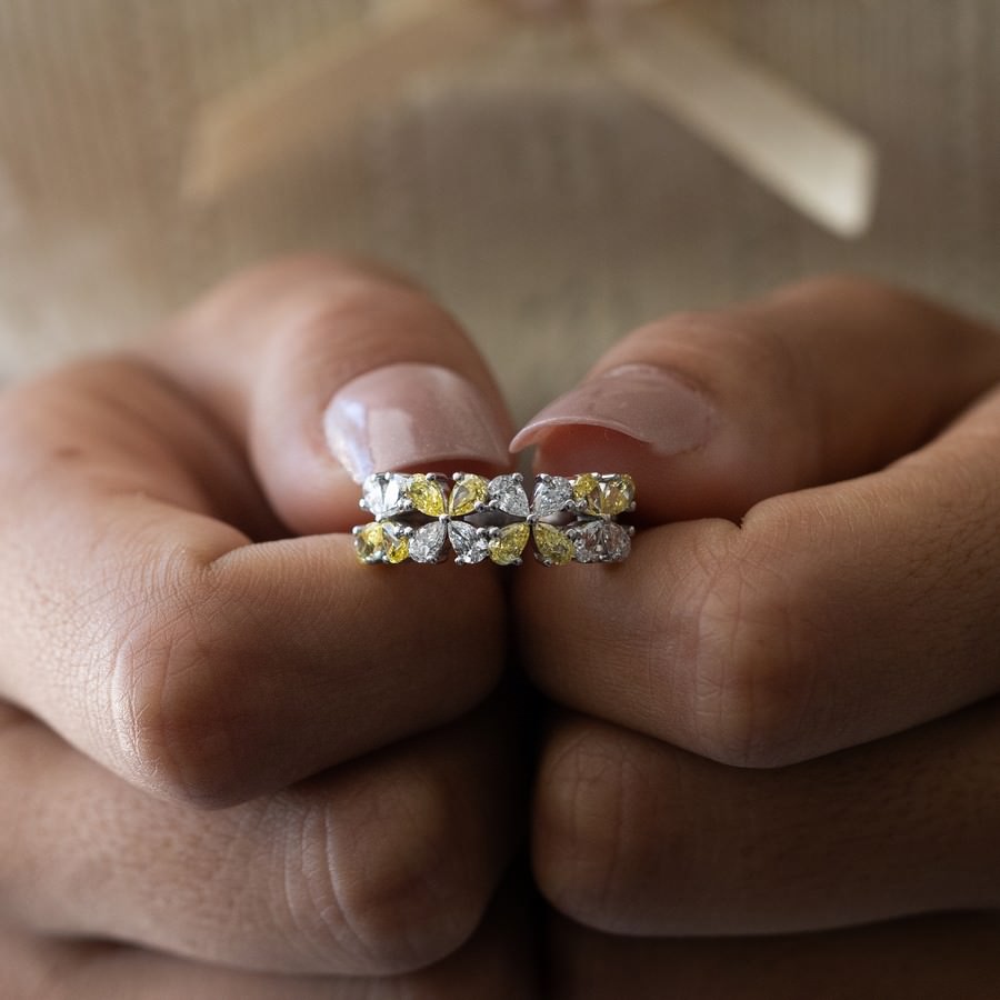 14K Rose Gold Pear-Shaped Fancy Vivid Yellow & White Flower Ring