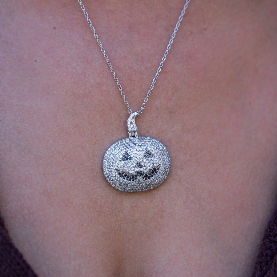 14K White Gold Black and White Pumpkin Pendant Necklace