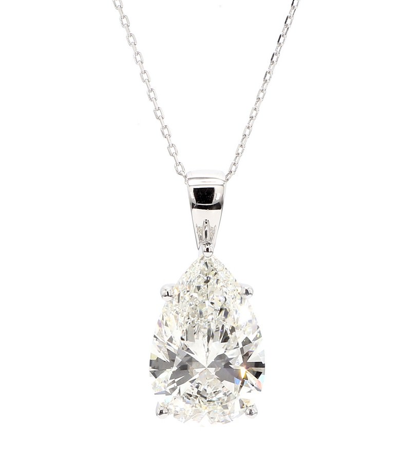 Experience elite sophistication with this showstopping solitaire pendant, featuring a breathtaking 10-carat IGI certified pear-shaped lab-grown diamond, exquisitely set in luminous 14K white gold. Presenting remarkable F color and VS clarity, the striking center stone captures and reflects light with unparalleled brilliance while its classic solitaire design ensures that all attention is focused on its extraordinary beauty. Meticulously crafted for those who appreciate both ethical luxury and timeless elegance, this pendant offers a grand, versatile statement piece suitable for any occasion.
