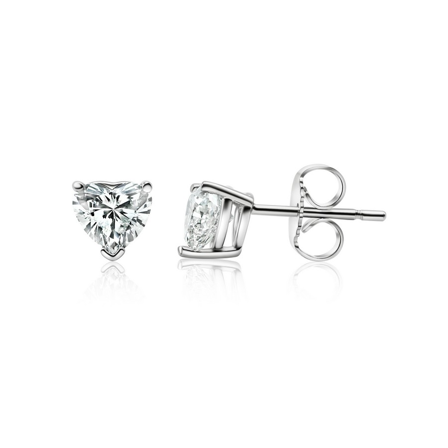 14K White Gold Heart Shape Lab-Created Diamond 4-Prong Stud Earrings (1 CTW F-G SI)