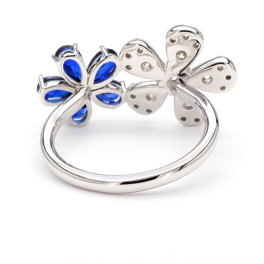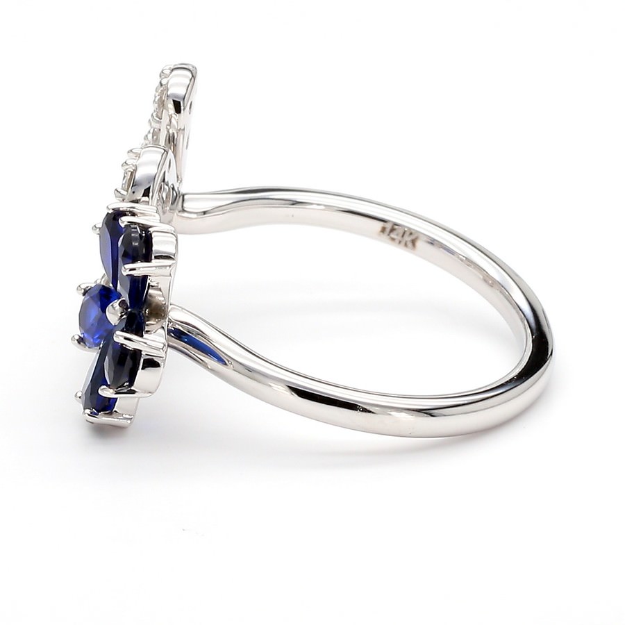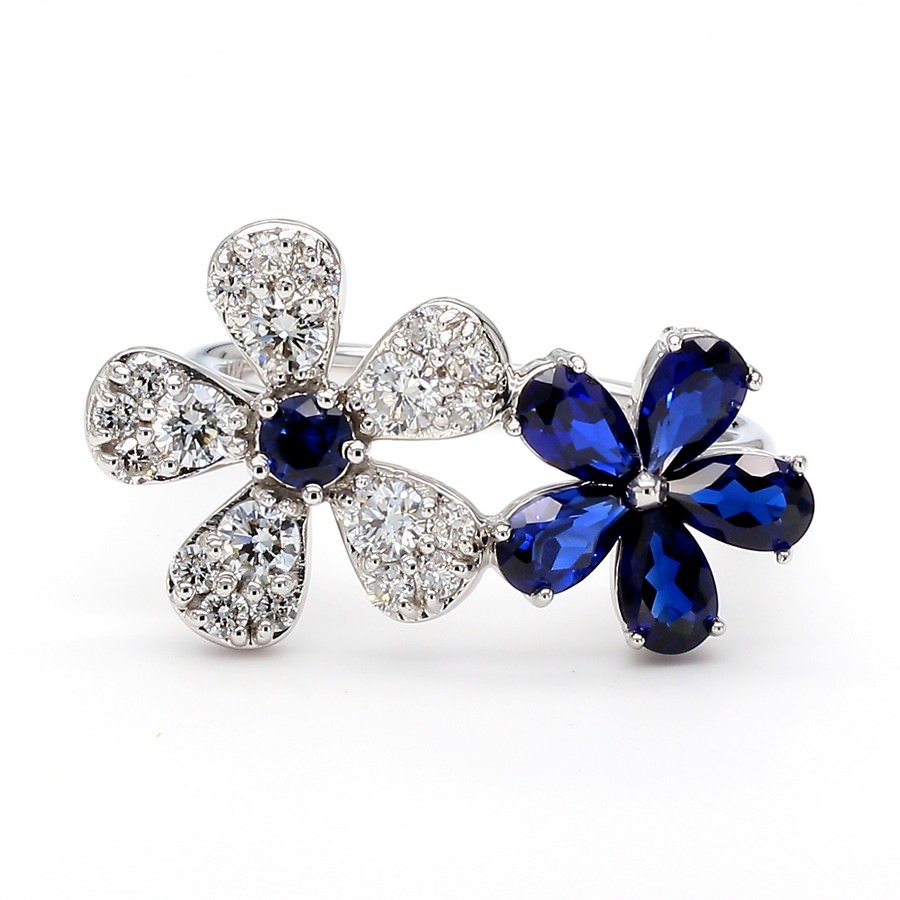 14K Yellow Gold Sapphire & Dual Floral Ring