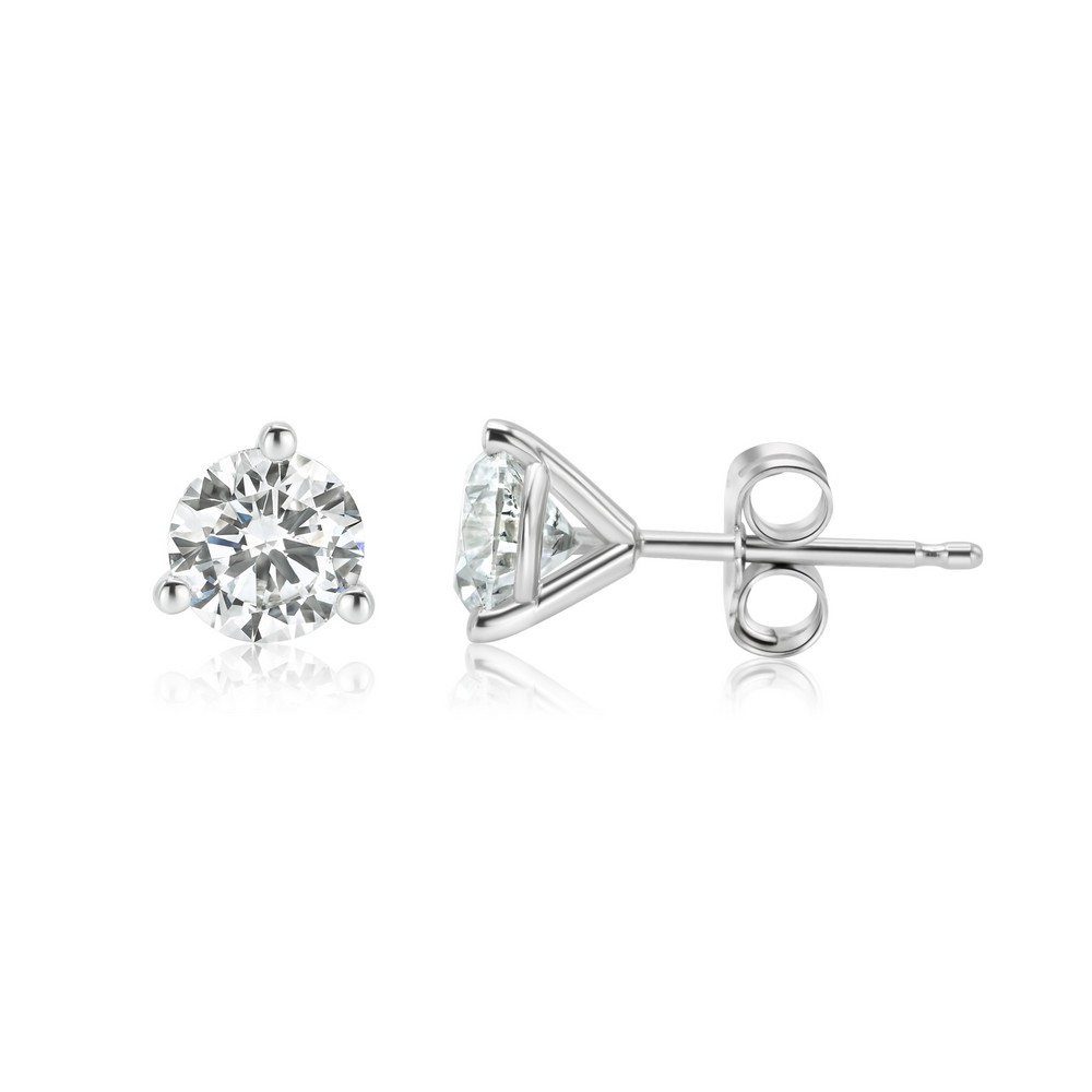 These 14K White Gold stud earrings feature natural round diamonds totaling 1.00 carat (G–H color, SI3 clarity) set in a classic 3 Prong Martini setting for brilliant sparkle. Secure Push Back closures make them perfect for everyday wear or special occasions.