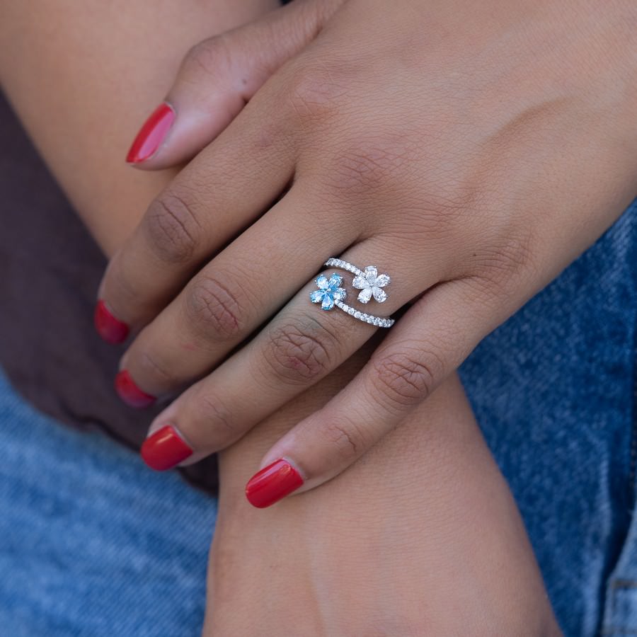 14K Yellow Gold Twin Blossom Ring – Fancy Vivid Blue and White Lab-Created Diamonds (1.50 CTW E-F VS)