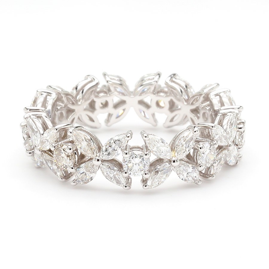 14K White Gold Floral Marquise Eternity Band