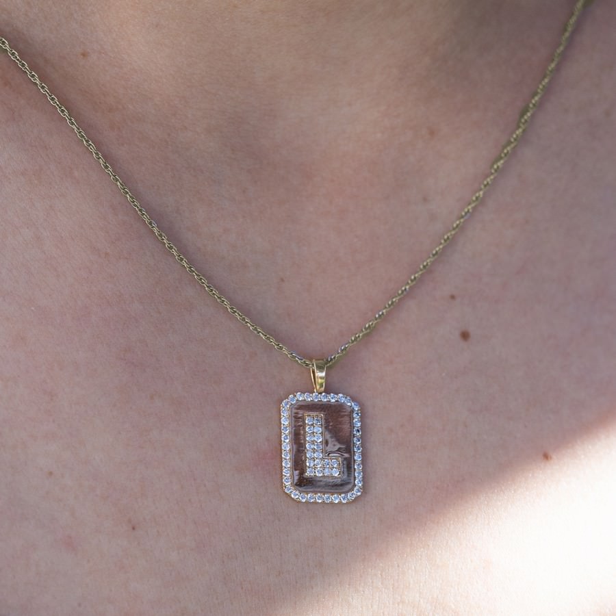 Silver Alphabet Dog Tag Pendant Necklace - Letter L