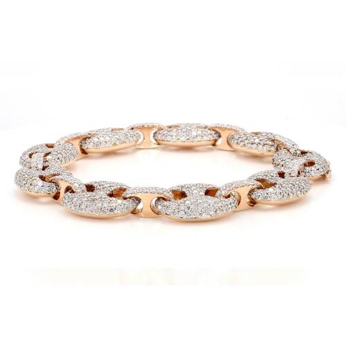 14K Rose Gold Natural Diamond Puff Mariner Link Bracelet (16.00 CTW)