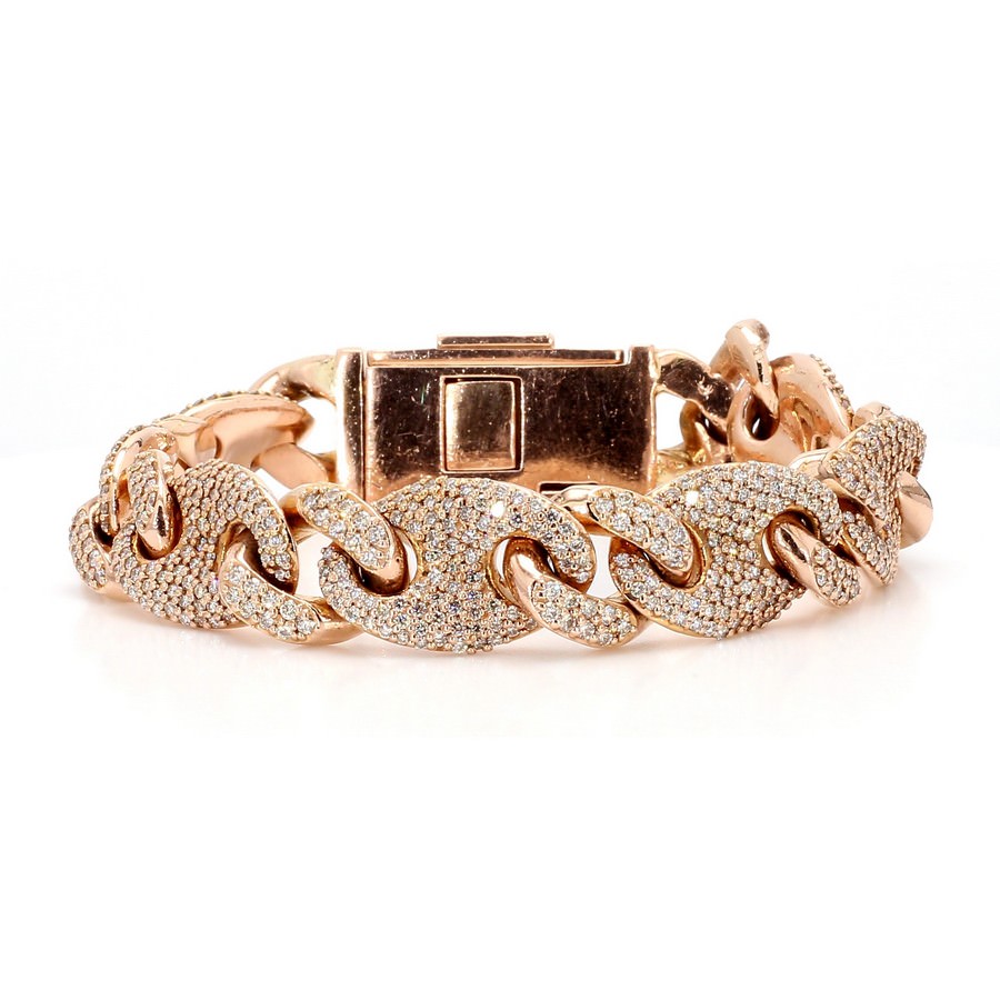 10K Rose Gold Natural Diamond Pave Cuban Link Bracelet (8.25 CTW)