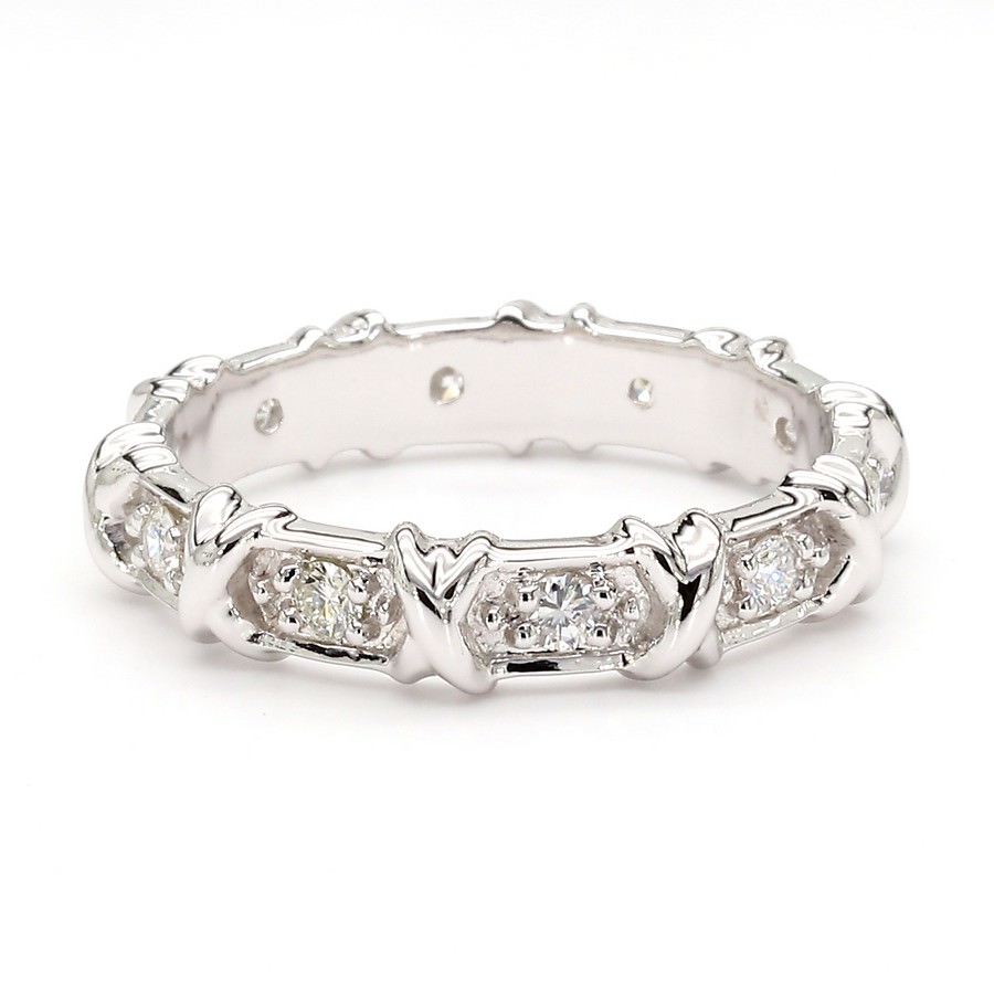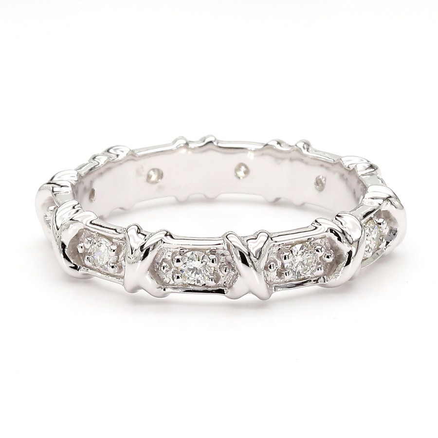 14K White Gold Natural Diamond "X" Station Eternity Band (0.30 CTW)
