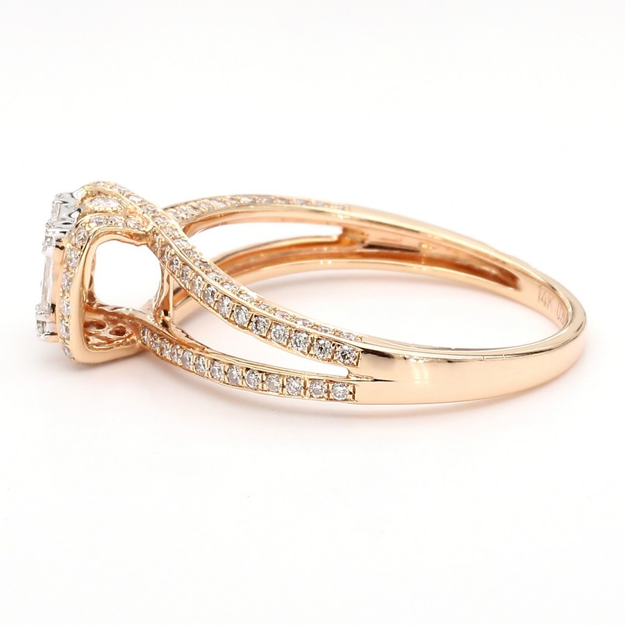 14K Rose Gold Natural Diamond Baguette & Round Cluster Engagement Ring (0.60 CTW)