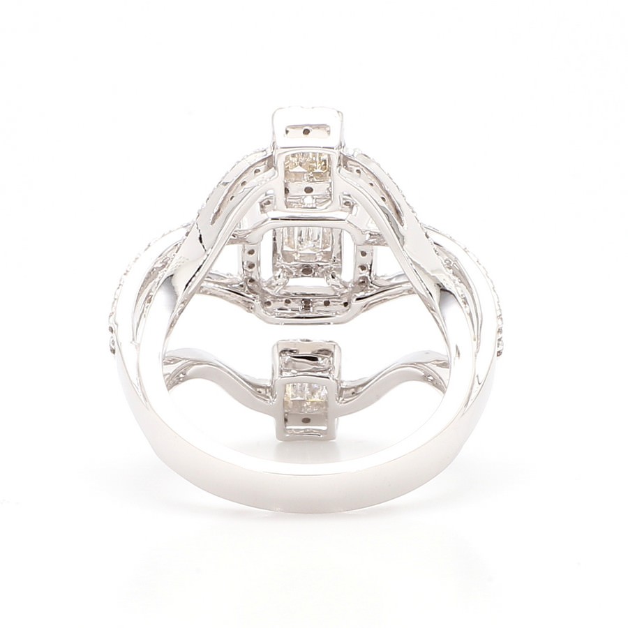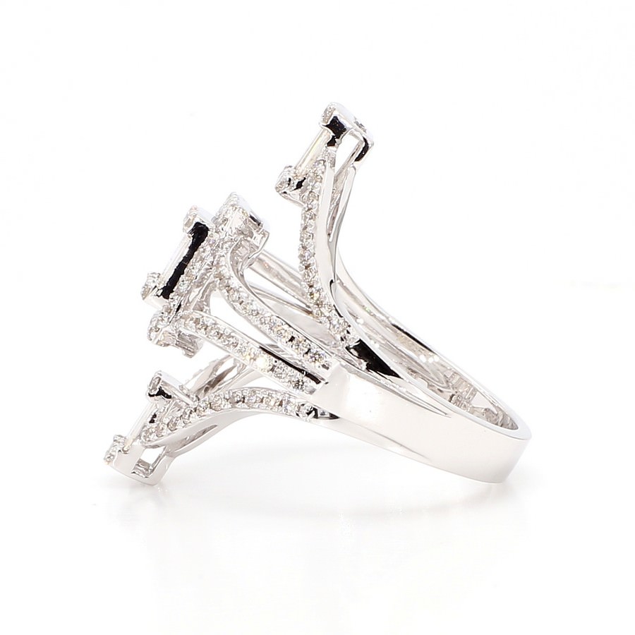 14K White Gold Natural Diamond Baguette Cluster Bypass Ring (1.25 CTW)