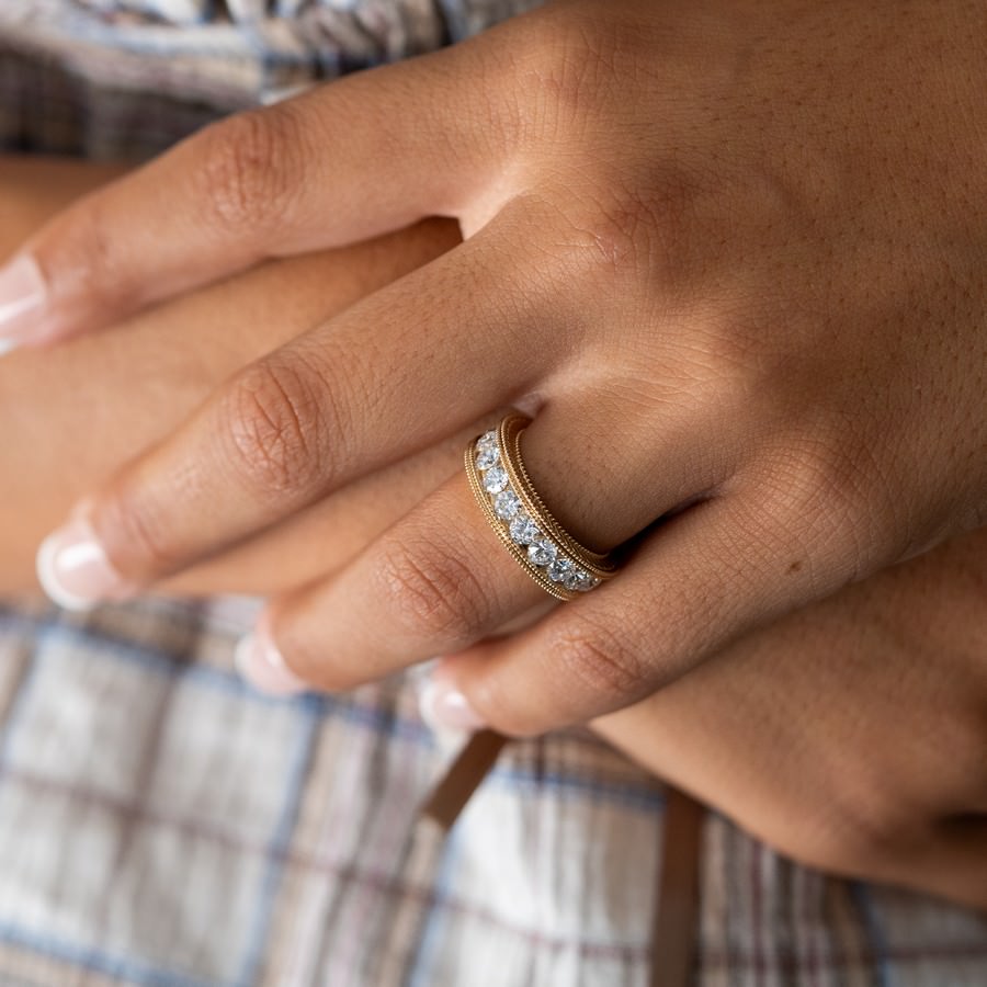 14K Yellow Gold Milgrain Channel Set Eternity Band