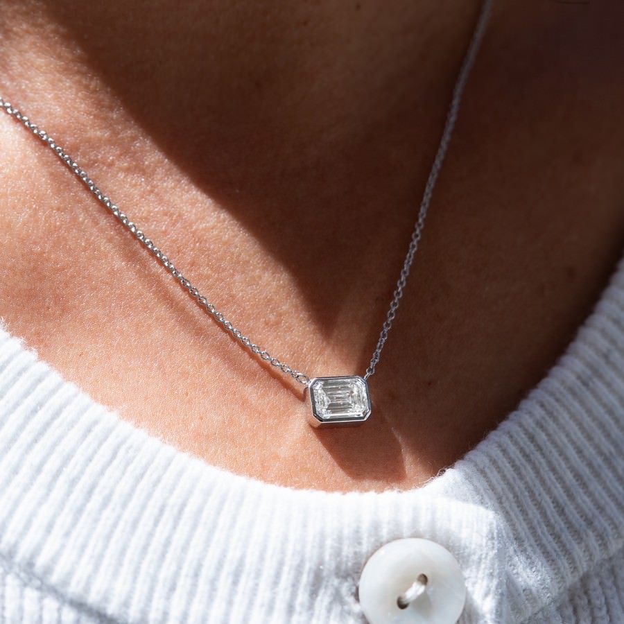 14K Yellow Gold Emerald Bezel Pendant Necklace